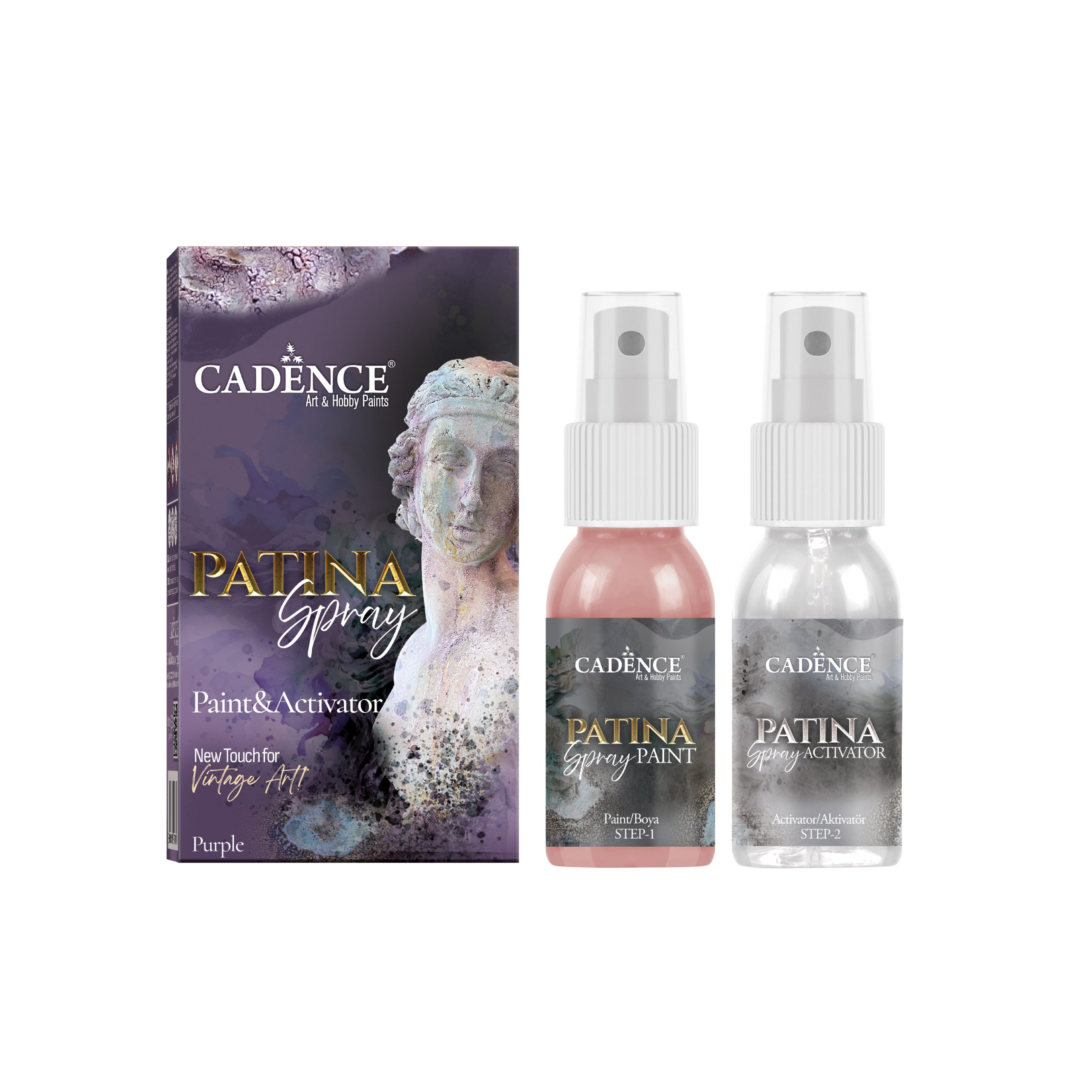 Shake well before use. Spray the Patina Paint onto a painted or metal leaf-applied surface, then apply the activator while the paint is still wet. Leave it to dry. The drying time varies between 2-6 hours depending on the amount applied.